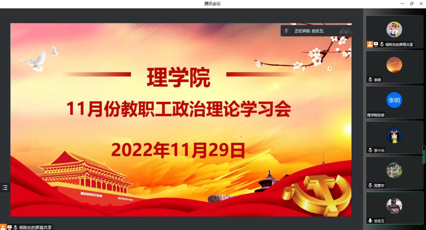 2022年11月29日下午,m88党总支召开2022年11月份教职工政治理论学习研讨会。人文学院党总支书记杨光、统战部综合管理科科长高雯宇旁听会议,m88党总支二级中心组成员、全体无课教师参加线上会议,会议由总支书记李小光主持。