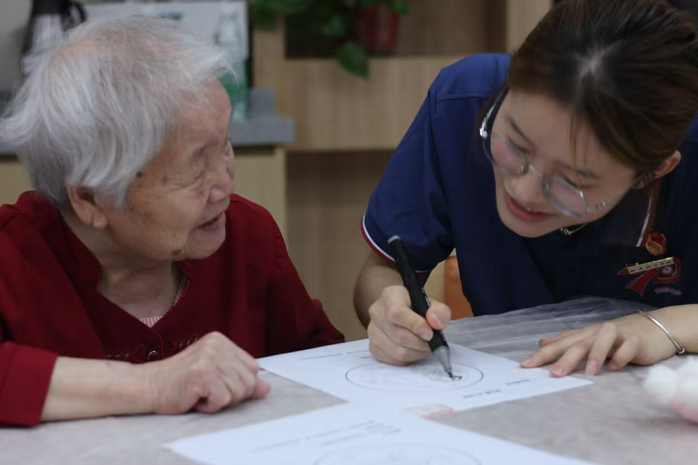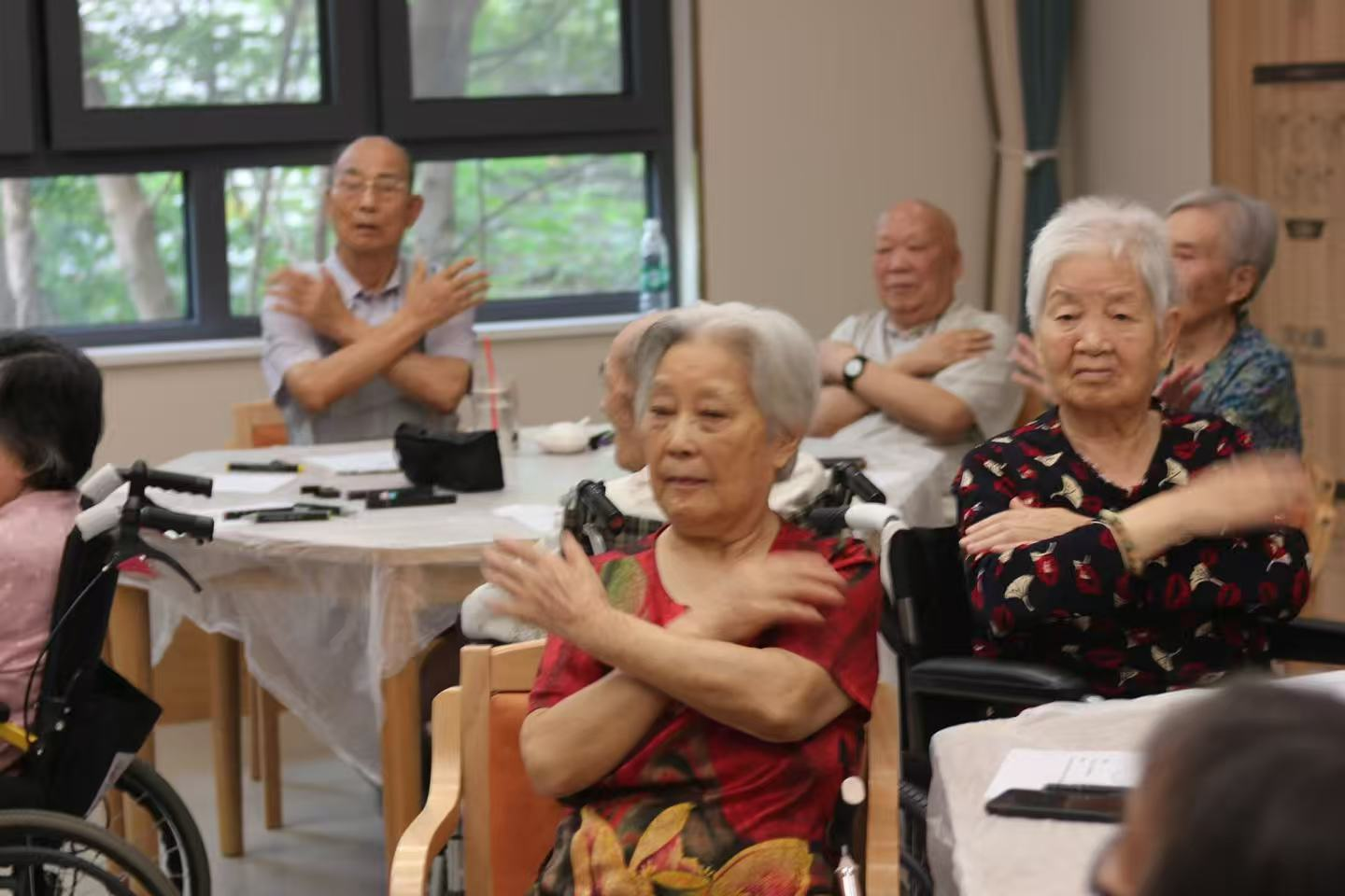 在心理专家马春霞老师对长者热情参与和精彩创作的肯定中,活动落下帷幕。她真挚祝愿老人们“身体安康,笑口常开,心悦无忧”。临别之际,一位奶奶意犹未尽,深情高歌一曲经典红歌,嘹亮而深情的歌声承载着满满的感动,为这场心灵之旅画下余韵悠长的句点。