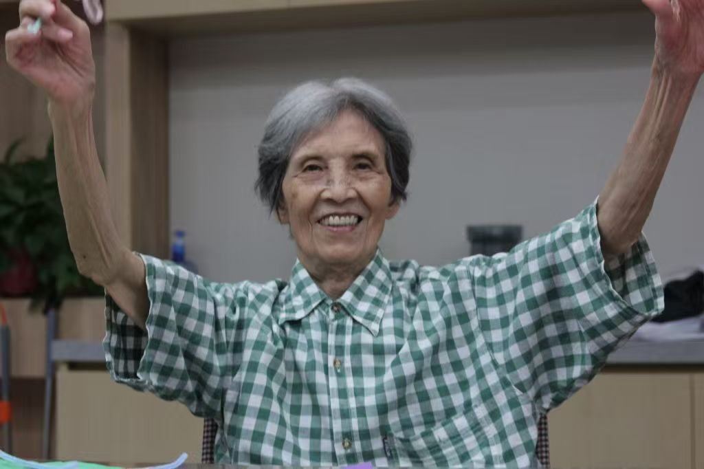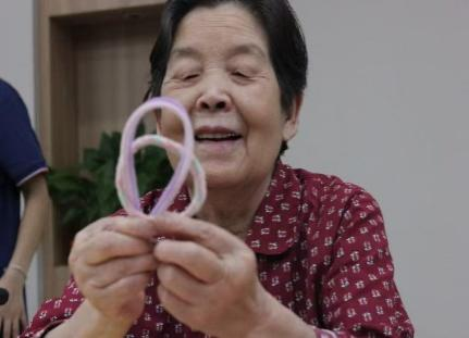 手工的余温尚未散去,《映山红》的前奏骤然响起,像一把钥匙,瞬间打开了记忆的闸门。年轻志愿者们清澈的歌声甫一响起,便有老人不自觉地跟着哼唱起来,手指在膝盖上悄悄打着节拍。当熟悉的旋律流淌,《东方红》等经典老歌引发现场更深的共鸣,皱纹舒展,目光闪亮,掌声和着节拍,一种跨越时空的情感在空气里流动。80多岁的李爷爷忍不住高声夸赞:“好!孩子们唱得好!这些歌,一听就回年轻时候喽!”他的赞誉响亮而直接,眼神里跳动着抑制不住的亮光。