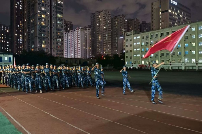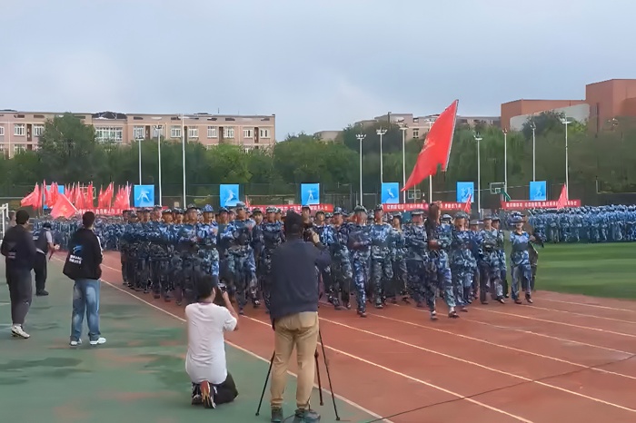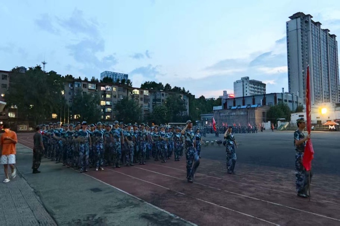 从晨光微露到暮色降临,训练场上始终回荡着嘹亮的口号与整齐的脚步声。站军姿时,他们挺直脊背、目光坚定,任凭汗水浸湿衣衫也纹丝不动,磨炼着“坐如钟、站如松”的意志;练队列时,他们反复打磨摆臂高度、步幅大小,从零散到整齐,从生疏到熟练,在一次次调整中培养默契与集体意识;学军歌时,他们放声高歌,用激昂的旋律传递热血与担当,让集体荣誉感在歌声中悄然凝聚。
