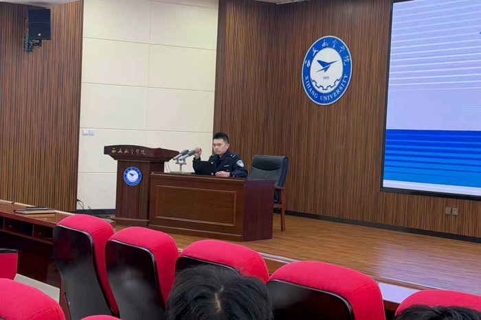 为切实提升广大在校学生的法治意识和防范电信网络诈骗能力,有效遏制校园诈骗案件发生,全力维护学生财产安全与校园和谐稳定,10月22日,我院联合保卫处邀请公安莲湖分局刑侦大队四级警长房俞百在图书馆五楼报告厅给2025级新生以“提高防范意识,远离电信诈骗”为主题进行反电信网络诈骗知识宣传培训。