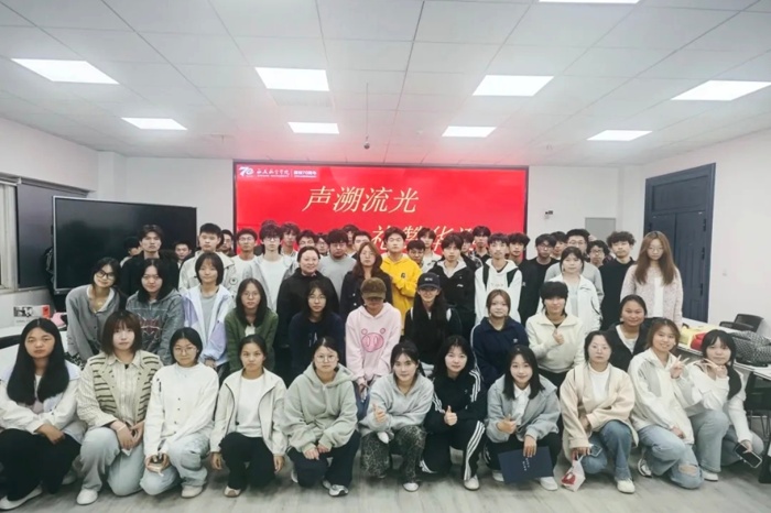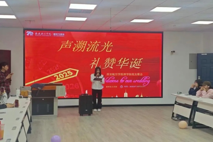 游戏环节过后,活动进入全体合唱部分。伴随着悠扬旋律,全体师生起立,共同唱响经典歌曲。激昂的歌声回荡在智慧教室内,表达了对母校70载辉煌历程的赞颂,也展现了全体西航人携手奋进、共创未来的坚定信念。