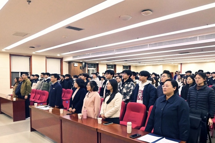 大会在庄严的国歌声中拉开帷幕。全体与会人员肃立齐唱国歌,展现了学院师生昂扬的精神风貌。李扬宣读《m88关于表彰2024-2025学年学生集体奖、个人奖暨社会实践优秀团队、个人的决定》。文件系统梳理并表彰了过去一学年中涌现出的各类先进团队、优秀学生典型,从学术、实践、文体、公益等多个维度,体现学院“五育并举”的育人成果。