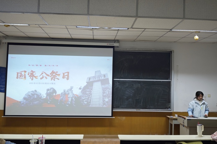 观影结束后,工作人员通过PPT系统梳理了南京大屠杀的历史脉络,从背景、经过到深远影响,层层递进地引导学生深刻认识这段民族伤痛的历史意义。随后的国家公祭日知识问答环节,同学们积极响应、踊跃作答,在互动交流中巩固历史知识,深化对国家公祭日设立意义的理解,现场学习氛围浓厚。