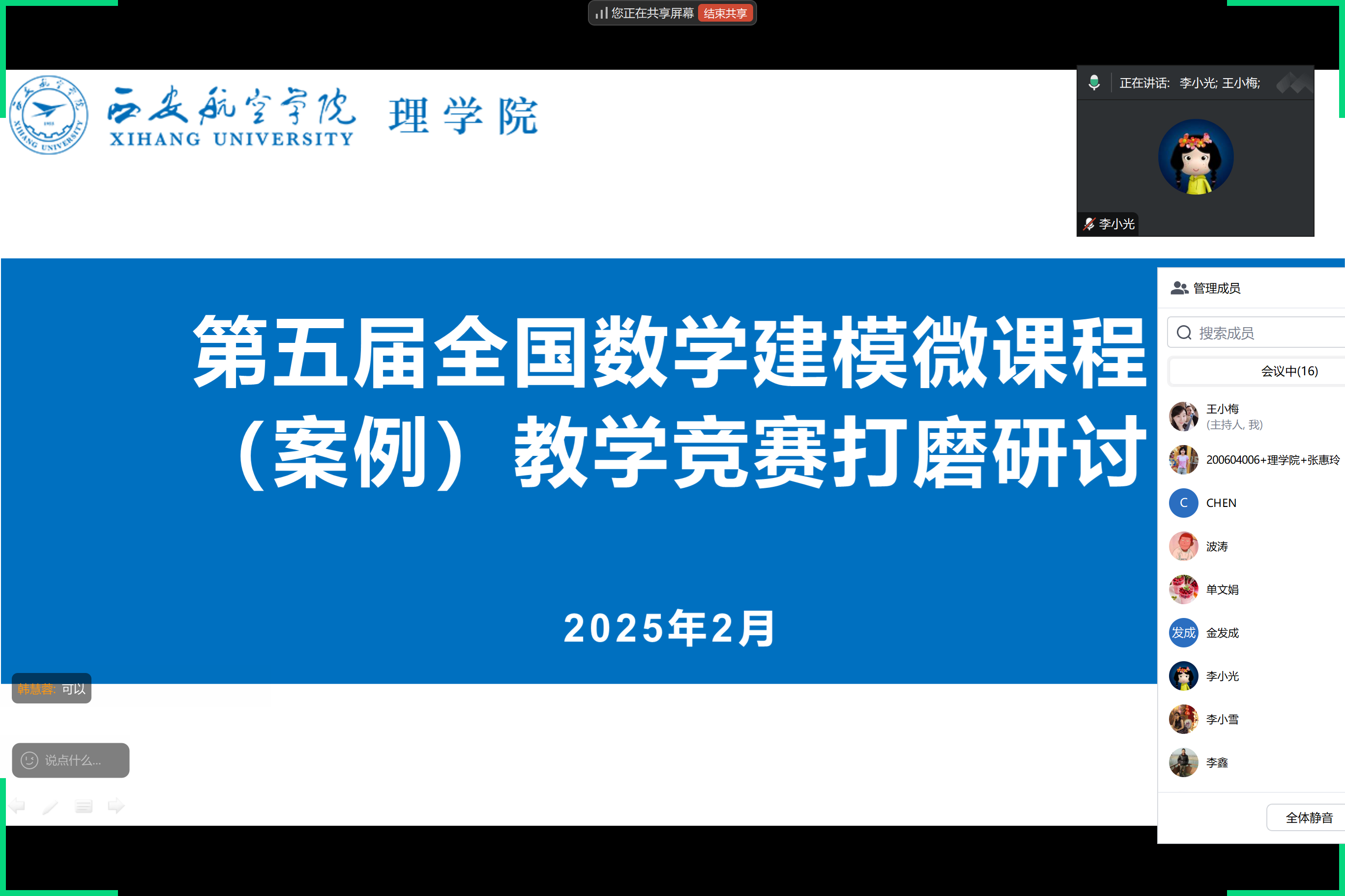 在“第五届全国数学建模微课程(案例)教学竞赛”打磨环节,6名预参赛教师进行了精彩的说课与授课,围绕数学建模选题,从案例的背景、主要内容、教学目标、教学设计和具体做法等方面进行了详细阐述。参会人员从案例的筛选、科研应用、航空特色的体现、解决实际问题、PPT图文并茂等方面进行了精细点评,提出了宝贵建议。