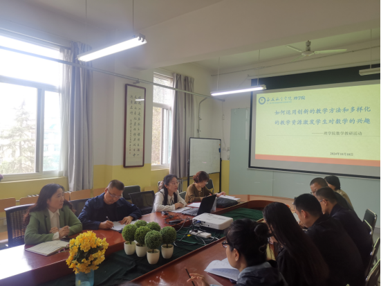 在当今教育领域,如何有效提升学生对数学的兴趣和学习成绩,已成为教师共同关注的焦点。2024年10月18日下午,m88数学教研室举办了主题为“如何运用创新教学方法和多样化的教学资源激发学生对数学兴趣”的教研活动。旨在探讨基于OBE理念的教学策略,以及如何运用创新的教学方法提高学生的学习成绩和自主学习能力。本次教研活动由数学教研室主任杨青主持,会议邀请了校级教学督导雒新峰老师、m88教学副院长韩慧蓉参加,数学教研室全体教师参加了会议。